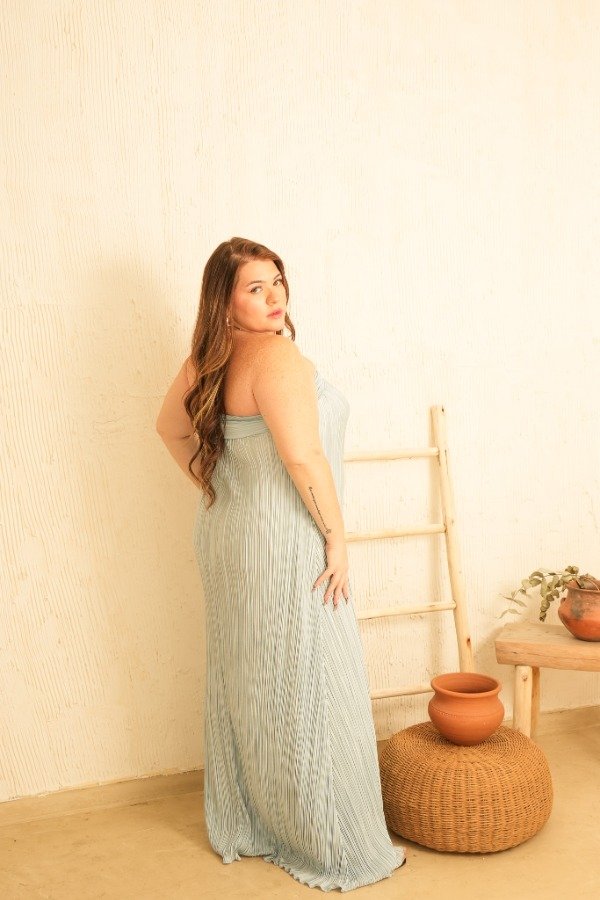 𝐃͟͟͟𝐞͟͟͟𝐬͟͟͟𝐜͟͟͟𝐫͟͟͟𝐢͟͟͟𝐩͟͟͟𝐜͟͟͟𝐢͟͟͟𝐨́͟͟͟͟͟͟𝐧͟͟͟: Vestido largo strapless confeccionado en satén plisado.